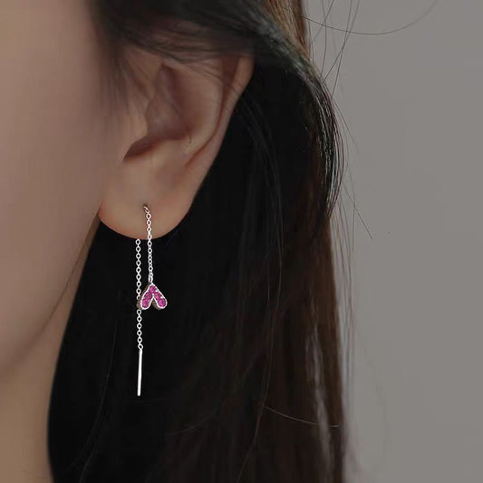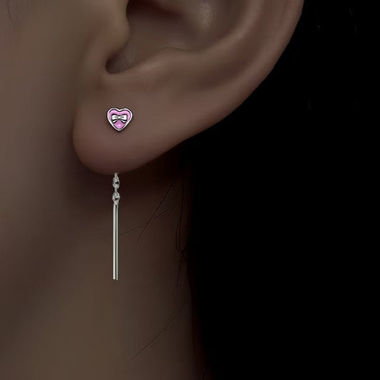 Sterling Silver Pink Bow Heart-Design Threader Earrings