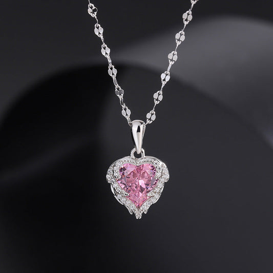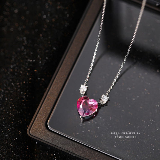 Sterling Silver Pink Diamond Heart-Design Necklaces