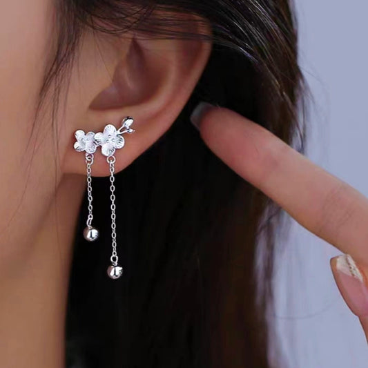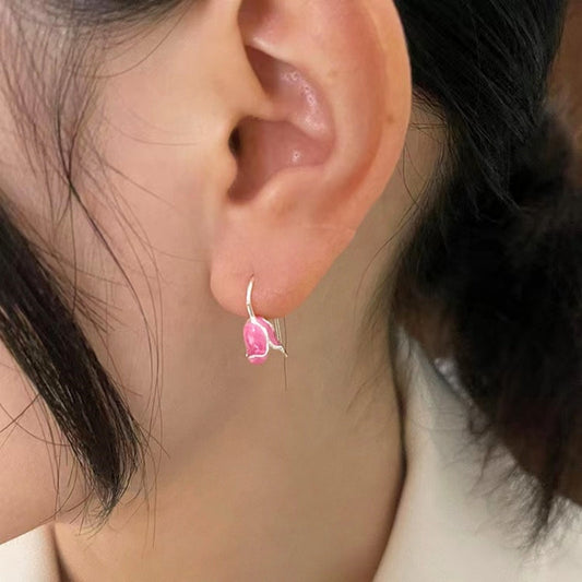 Sterling Silver Pink White Zircon Tulip Hoop Flower Stud Earrings