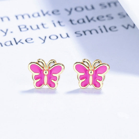 Sterling Silver Pink Small Umbrella Stud Earrings