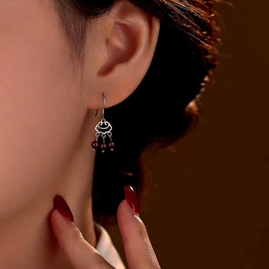 Sterling Silver Pomegranate Tassel Ear Hooks