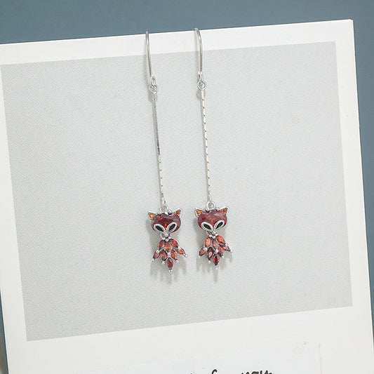 Sterling Silver Red And Pink Little Fox Threader Earrings