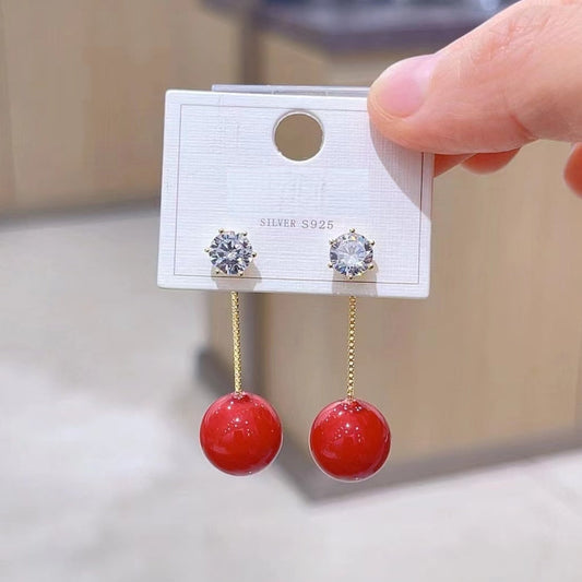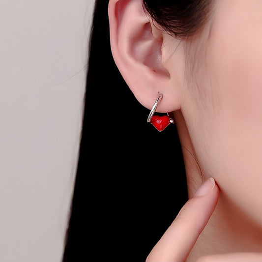 Sterling Silver Red Stone Zircon Cherry Stud Earrings