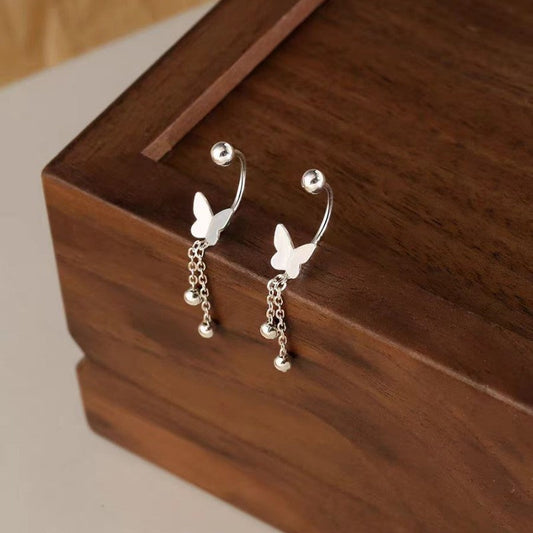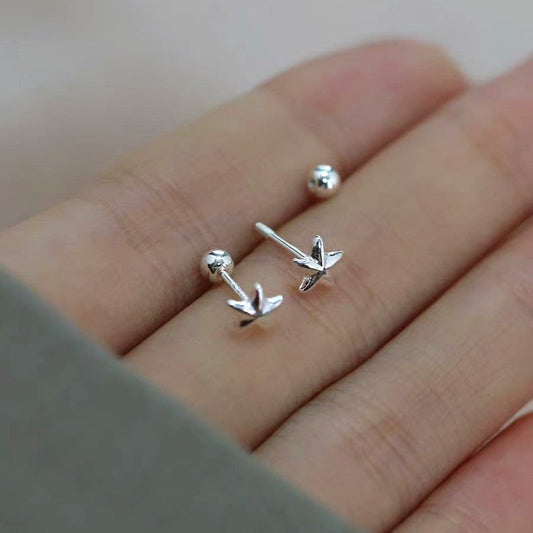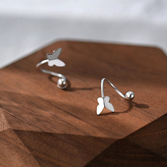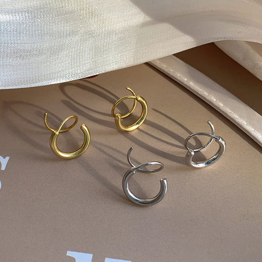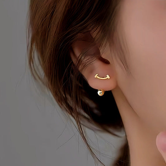 Sterling Silver Screw Smiling Arc-Shaped Earrings