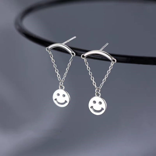 Sterling Silver Smile Face Chain Earrings
