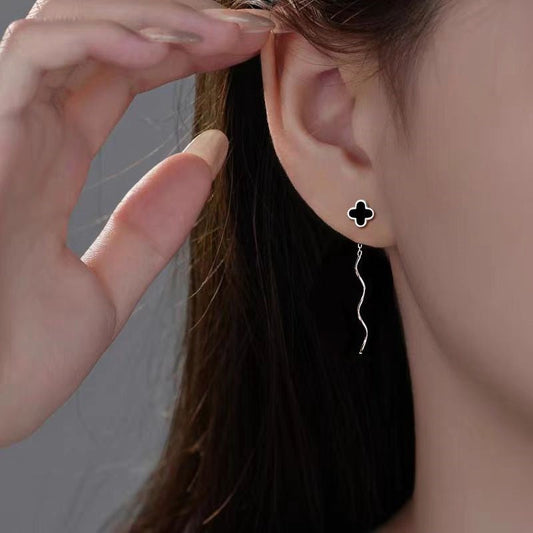 Sterling Silver Wavy Four-Leaf Threader Earrings