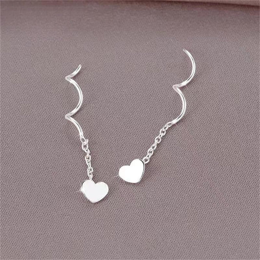 Sterling Silver Wavy Heart-Design Threader Earrings
