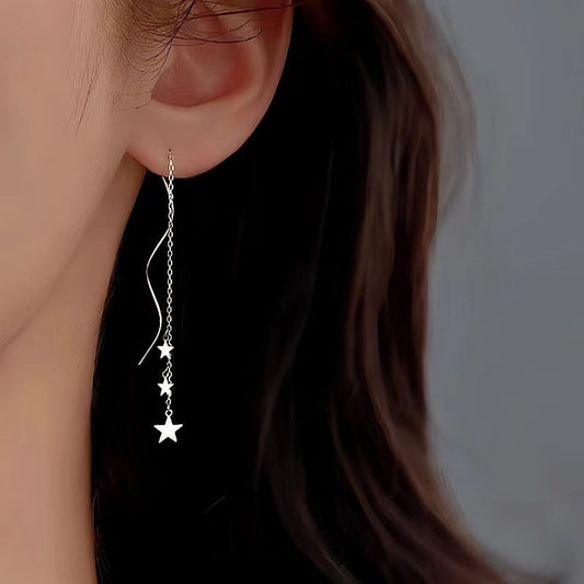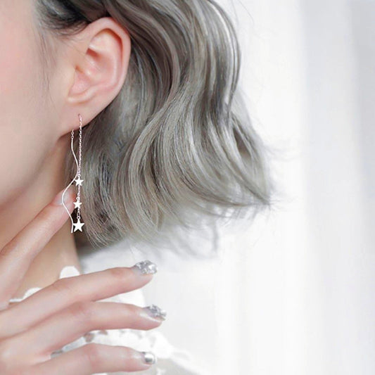 Sterling Silver Wavy Large And Small Star Threader Earrings