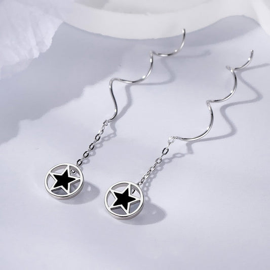 Sterling Silver Wavy Star Diamond Threader Earrings