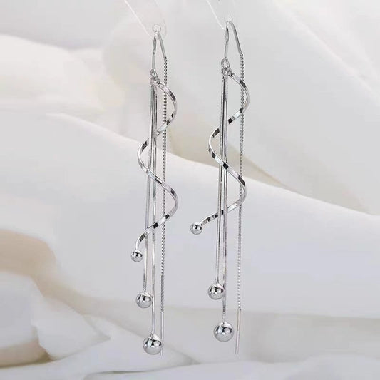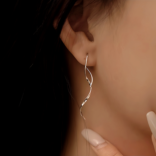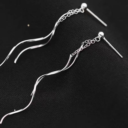 Sterling Silver Wavy S-Shaped Threader Earrings