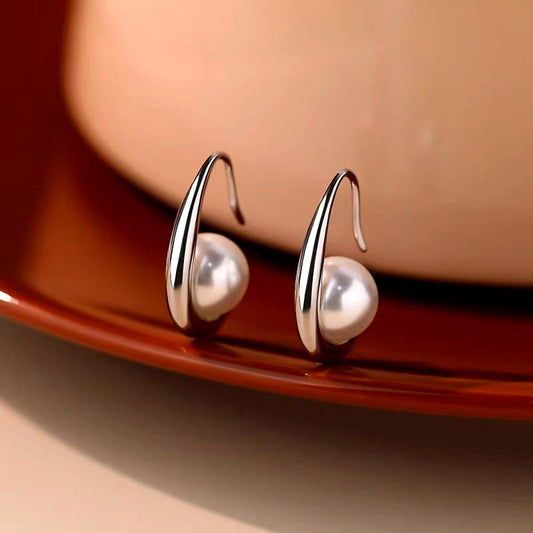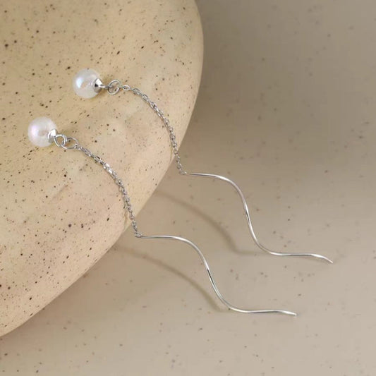 Sterling Silver Wavy Artificial Pearl Threader Earrings