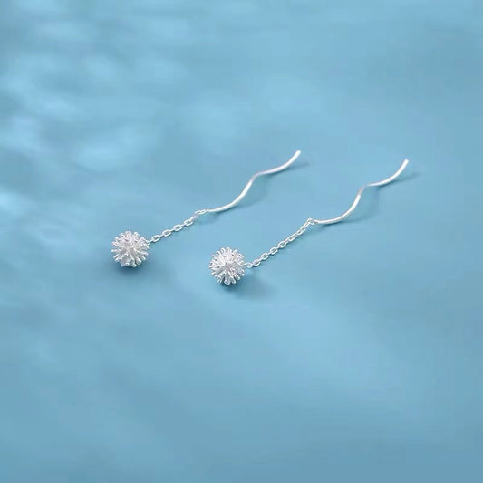 Sterling Silver Wavy Diamond Tassel Threader Earrings