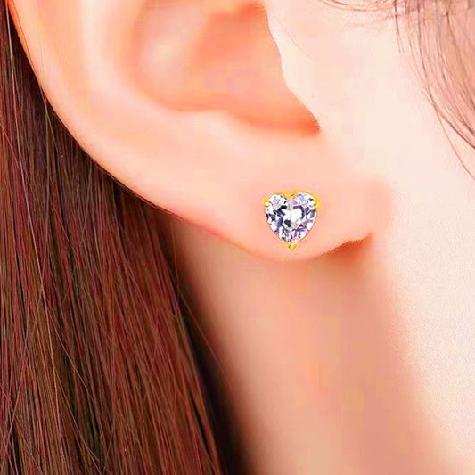 Sterling Silver Zircon Heart Stud Earrings