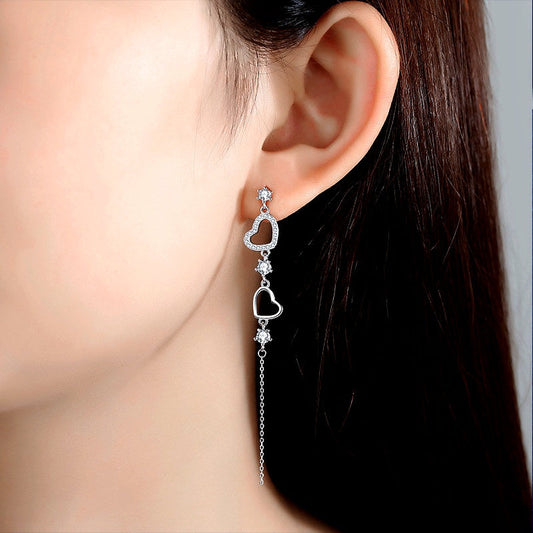 Sterling Silver Zircon Heart-Design Earrings