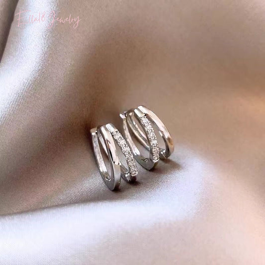 Sterling Silver Zircon Hollow Double-Layer Hoop Earrings