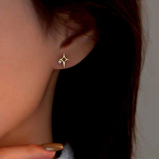 Sterling Silver Zircon Hollow Four-Cornered Star Stud Earrings