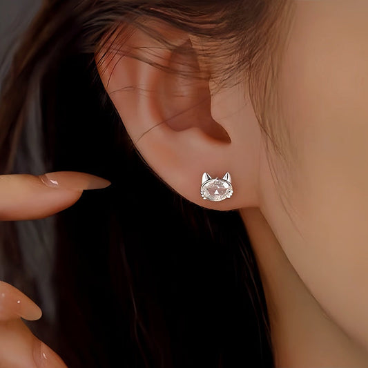 Sterling Silver Zircon Kitten Stud Earrings