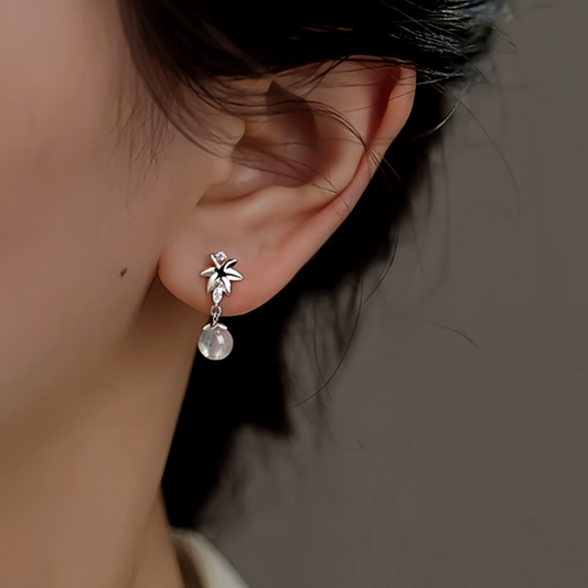 Sterling Silver Zircon Maple Leaf Earrings