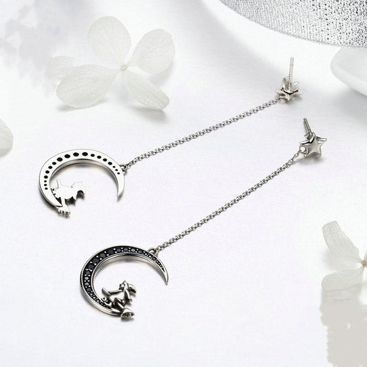 Sterling Silver Zircon Moon Earrings