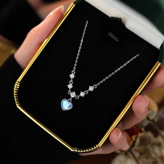 Sterling Silver Zircon Moonstone Heart Necklaces