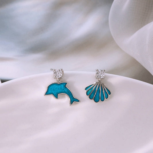 Sterling Silver Zircon Ocean Shell Dolphin Earrings