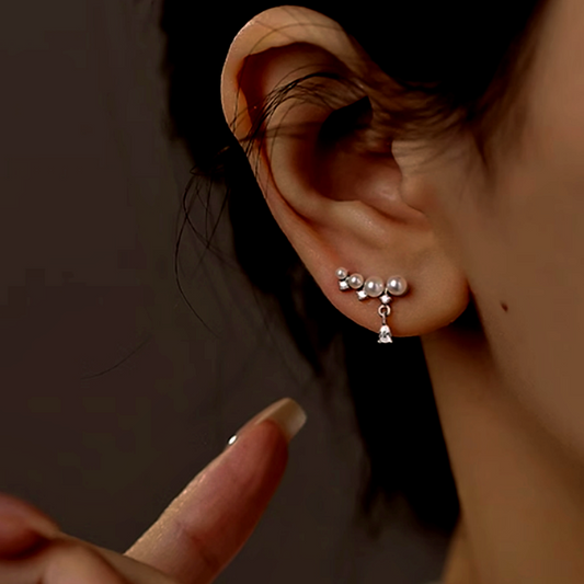Sterling Silver Zircon Pearl Crawler Earrings