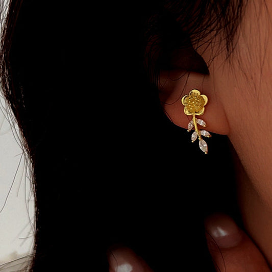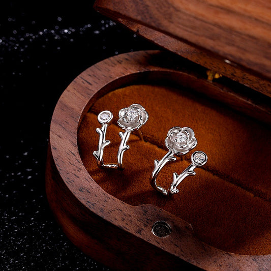 Sterling Silver Zircon Small Fragrance Style Flower Earrings