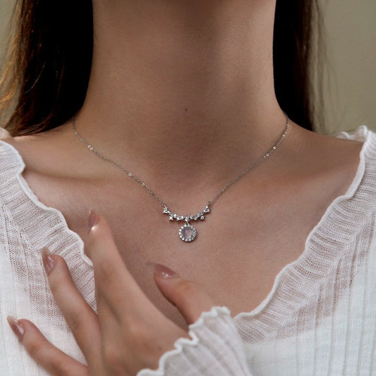 Sterling Silver Zircon Rotating Peach Blossom Clavicle Necklace
