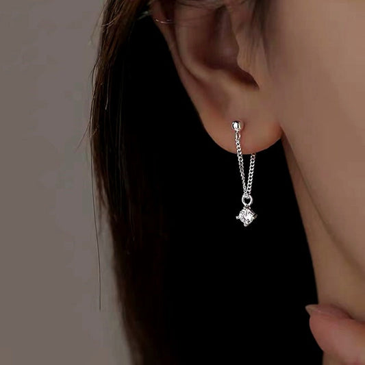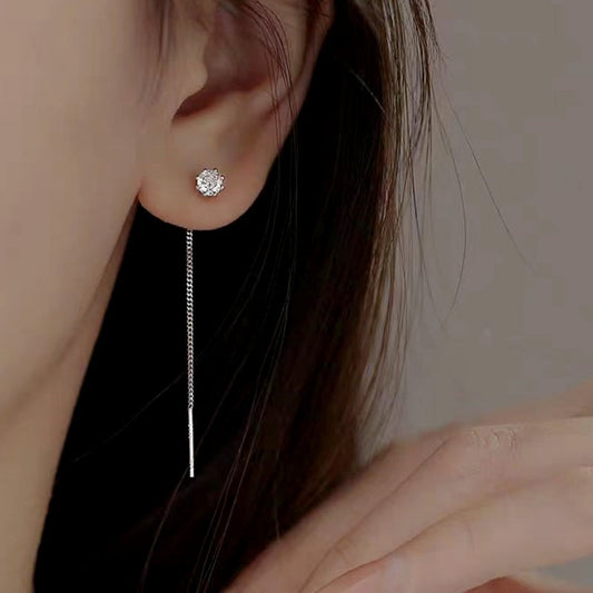 Sterling Silver Zircon Sparkling Diamond Threader Earrings