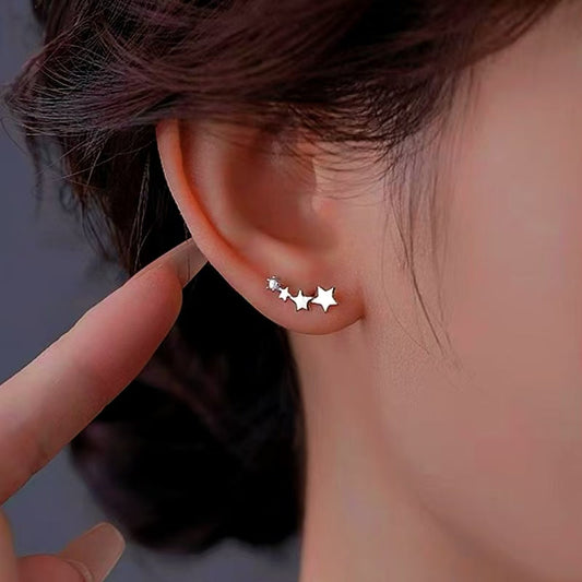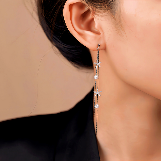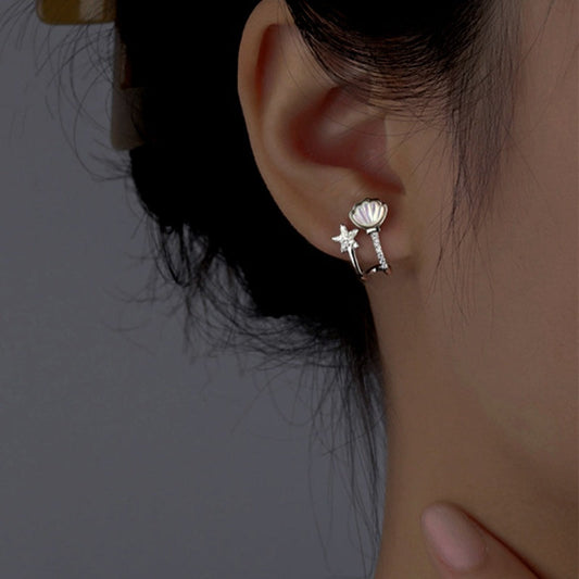 Sterling Silver Zircon Starfish Shell Stud Earrings