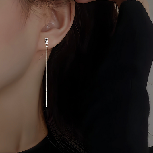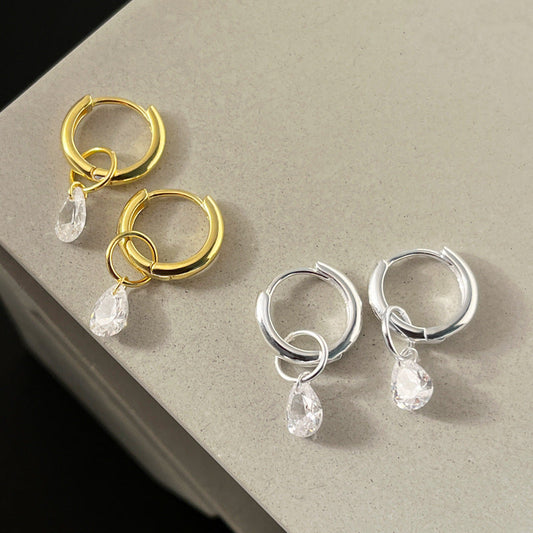 Sterling Silver Zircon Water Drop Tassel Earrings