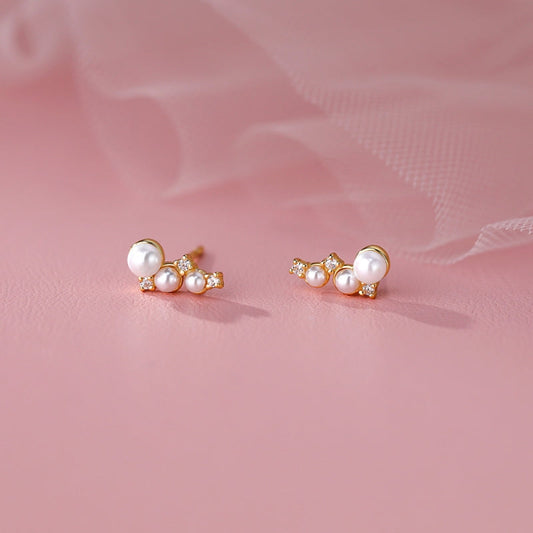 Sterling Silver Zircon Three Pearl Stud Earrings