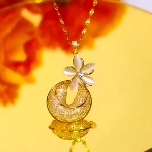 14K Gold-Plated Cat's Eye Flower Mesh Hoop Necklaces