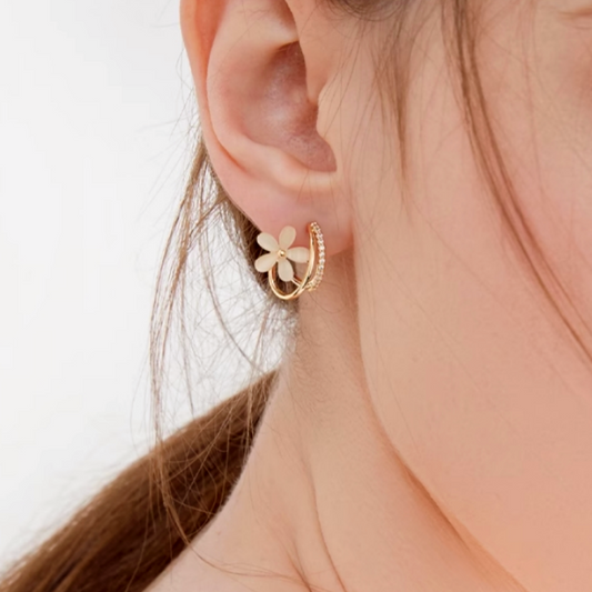 14K Gold-plated Cat's Eye Flower Earrings