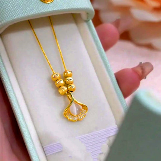 14K Gold-Plated Cat's Eye Heart Angel Wing Necklace