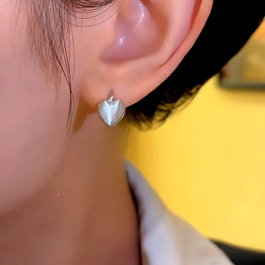 14K Gold-plated Cat's Eye Heart-Design Small Hoop Earrings
