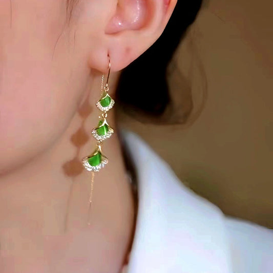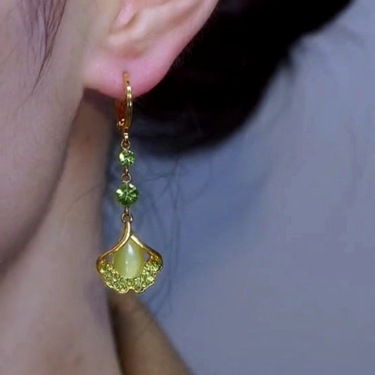 14K Gold-plated Cat's Eye Leaf Earrings