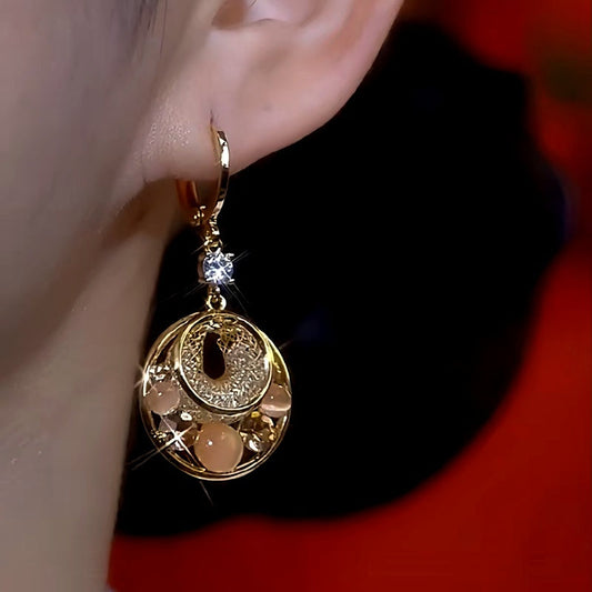 14K Gold-Plated Cat's Eye Rose Circle Earrings