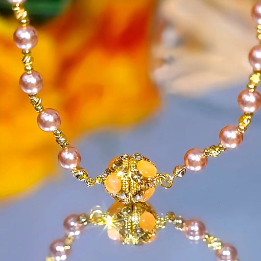 14K Gold-Plated Cat's Eye Stone Magnetic Pearl Necklace