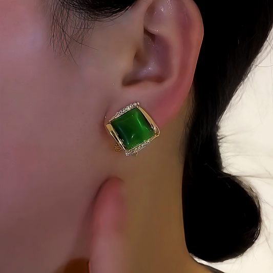 14K Gold-Plated Cat's Eye Stone Zircon Diamond Cube Earrings