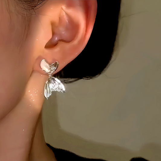 14K Gold-plated Cats Eye Fishtail Pendant Earrings