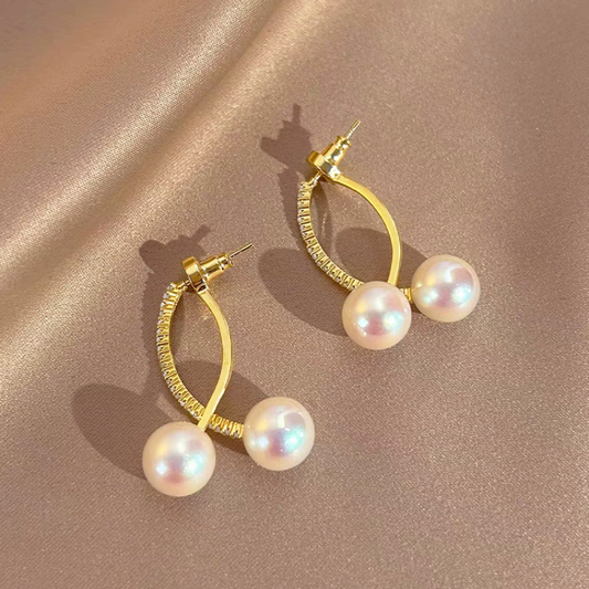14K Gold-Plated Crossed Cherry Pearl Earrings