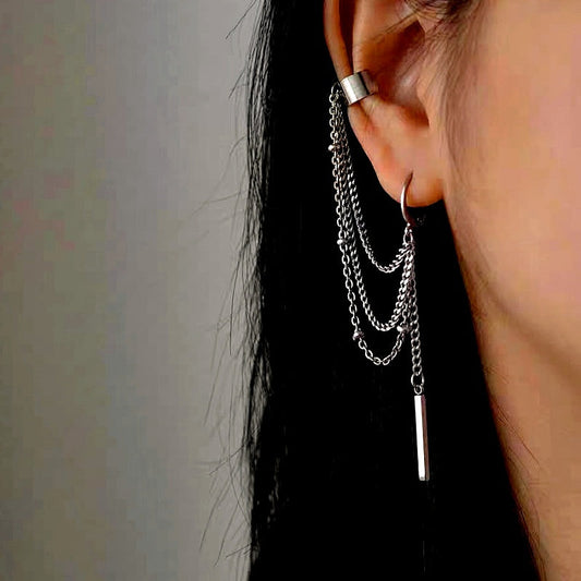 14K Gold-plated Cross Chain Ear Cuff Earrings