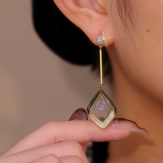 14K Gold Plated Geometric Rhombus Crystal Earrings