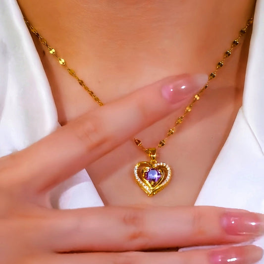 14K Gold Plated Luxury Purple Diamond Ocean Heart Necklaces