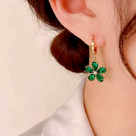 14K Gold-plated Crystal Flower Earrings