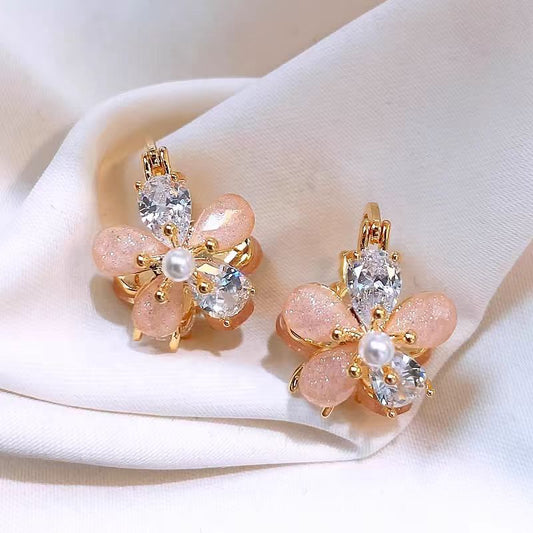 14K Gold-Plated Crystal Flower Pearl Earrings