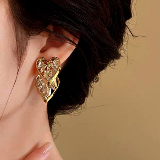 14K Gold-Plated Crystal Love Heart-Design Earrings