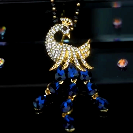 14K Gold-Plated Crystal Peacock Sweater Necklace