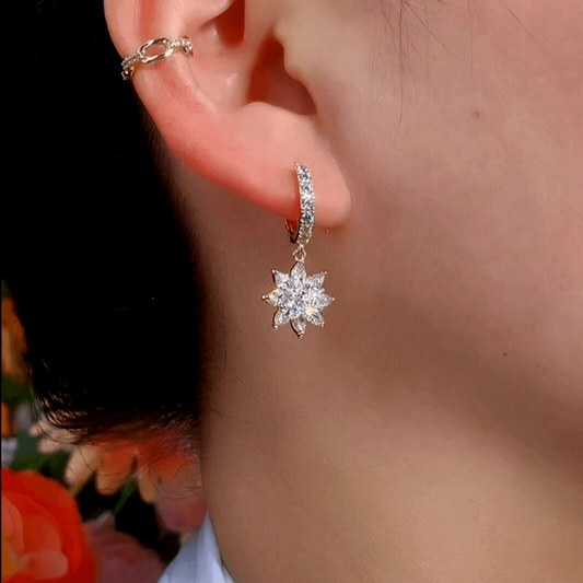 14K Gold-Plated Diamond Bling Sunflower Earrings